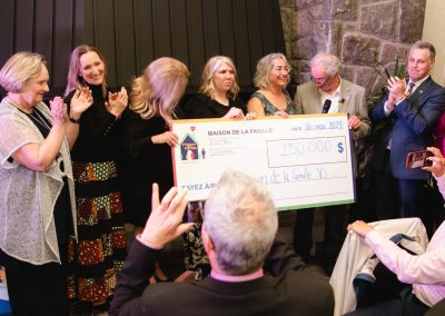 Réunissant 200 convives, la soirée a débuté sous les mélodies de la chorale de chant des élèves de l’école Sainte-Madeleine, marquant ainsi le début d’une soirée festive témoignant de la solidarité de la communauté envers l’organisme famille. Ce premier évènement de levée de fonds clôture de belle façon la campagne majeure de financement visant à réunir les montants nécessaires à la construction de la nouvelle maison de Saint-Zotique. Grâce à la grande générosité des convives et des partenaires, c’est un montant de 77 563 $ qui a été amassé et sera entièrement dédié au soutien des familles de la région.